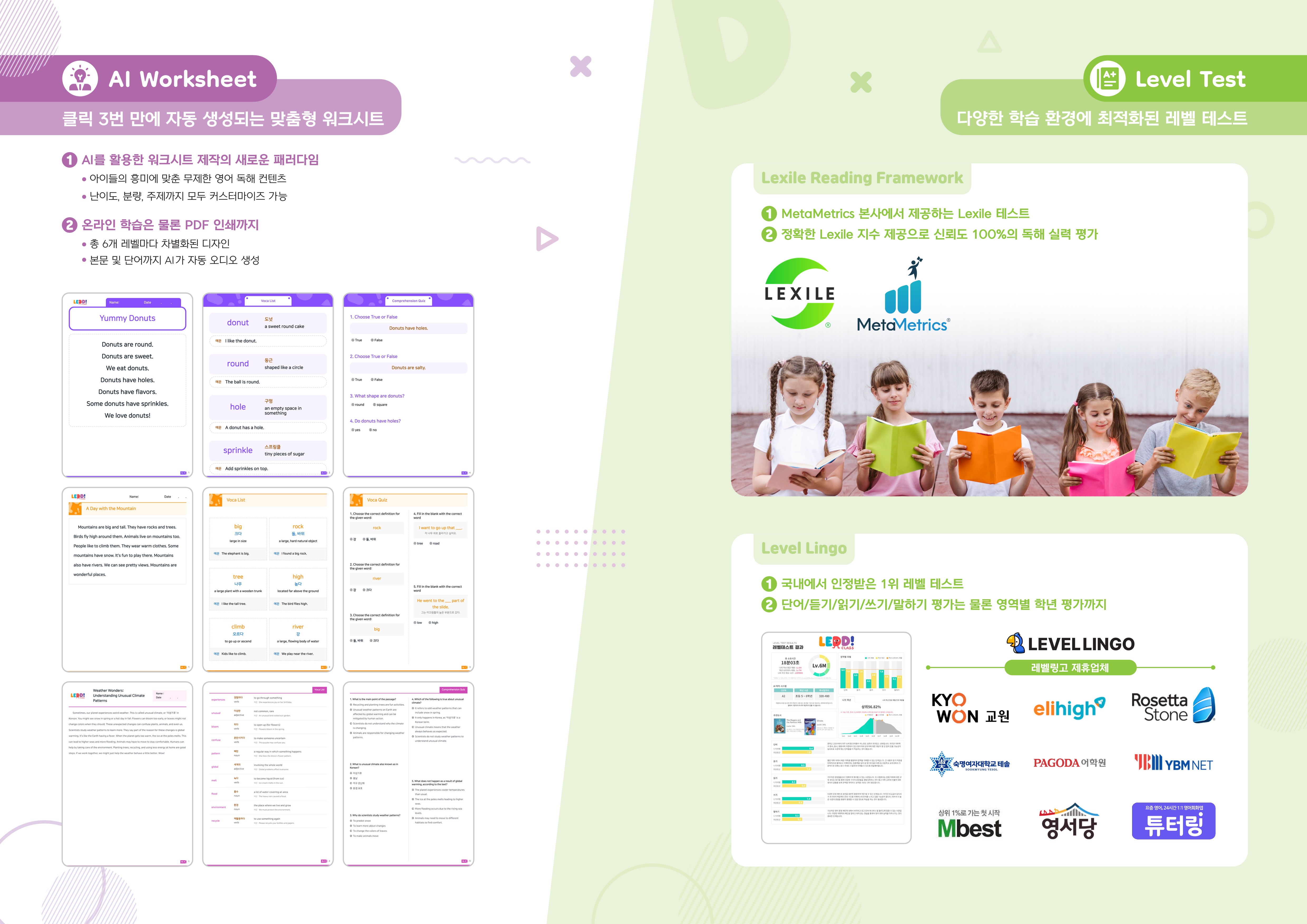 마더구스부터 수능 독해 완성단계까지 다양하게 준비되어있습니다.